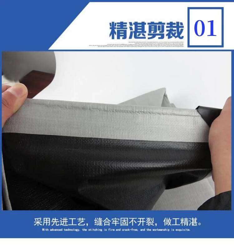 產(chǎn)品介紹黑銀色PE防水篷布做工精良裁剪**,關(guān)鍵細節(jié)放大看,用料足,工藝精致黑銀色PE防水篷布精湛裁剪,采用先進工藝,縫合牢固不開裂···